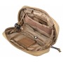 Подсумок административный малый предназначен для размещения на бронежилете, разгрузочном жилете и поясе, имеющих систему крепления MOLLE различного оборудования и необходимых вещей (мультитулы, ручки, маркеры, документы и т.д.). Размер внутреннего отсека и встроенный органайзер позволяют разместить в подсумке несколько инструментов - мультитулы, ножи или иные схожие по размерам предметы. Возможно размещение на обычном ремне.