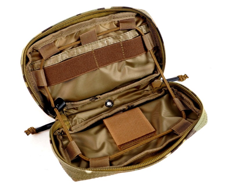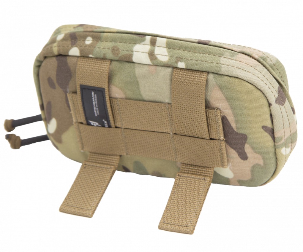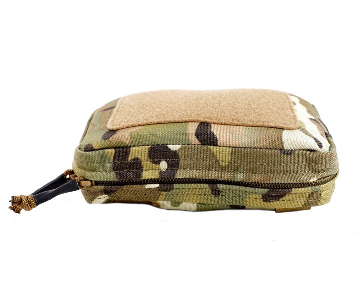 Подсумок административный малый предназначен для размещения на бронежилете, разгрузочном жилете и поясе, имеющих систему крепления MOLLE различного оборудования и необходимых вещей (мультитулы, ручки, маркеры, документы и т.д.). Размер внутреннего отсека и встроенный органайзер позволяют разместить в подсумке несколько инструментов - мультитулы, ножи или иные схожие по размерам предметы. Возможно размещение на обычном ремне.