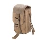 Подсумок вертикальный Wartech UP-106 утилитарного назначения, для размещения внутри различного оборудования на бронежилете, разгрузочном жилете или поясе, имеющих систему крепления MOLLE. Закрывается на клапан с фастексом в связке с липучкой велкро. Попавшая внутрь вода выводится с помощью специального отверстия-люверса. Возможно размещение на обычном ремне. Доступен в различных цветах, данный вариант в цвете койот.