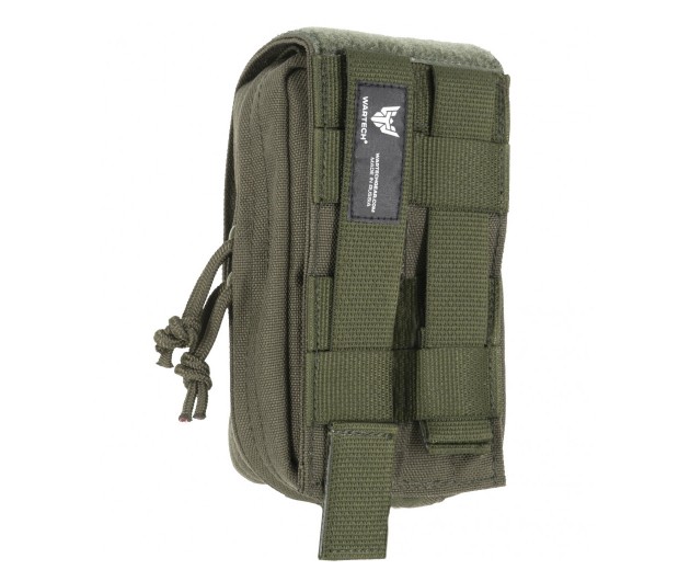 Подсумок вертикальный Wartech UP-106 утилитарного назначения, для размещения внутри различного оборудования на бронежилете, разгрузочном жилете или поясе, имеющих систему крепления MOLLE. Закрывается на клапан с фастексом в связке с липучкой велкро. Попавшая внутрь вода выводится с помощью специального отверстия-люверса. Возможно размещение на обычном ремне. Доступен в различных цветах, данный вариант в цвете олива.