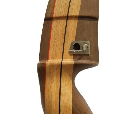 Отверстие на полочке должно быть совмещено с соответсвующим отверстием на луке. Возврат усика после высытрела осуществляется с помощью магнита или пружины.