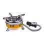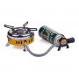 Мини плита в пластиковом кейсе с пьезо элементом на выносном шланге. Использование шланга повышает безопасность, а также удобство при эксплуатации. При низких температурах есть возможность поместить баллон в более теплое место для подогрева газа (например, спальный мешок).