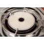 Плита имеет керамическую конфорку большой площади. Большая рабочая поверхность при необходимости позволяет задействовать эффект обогревателя и её практически невозможно задуть ветром.