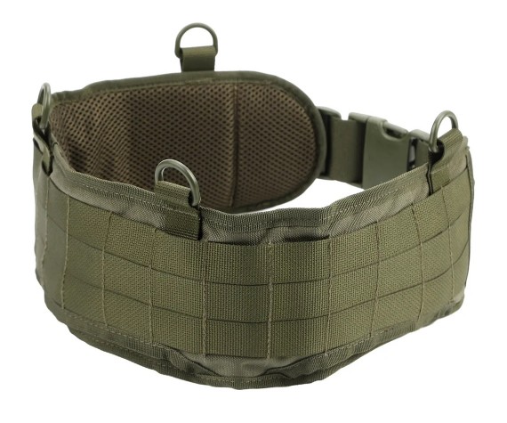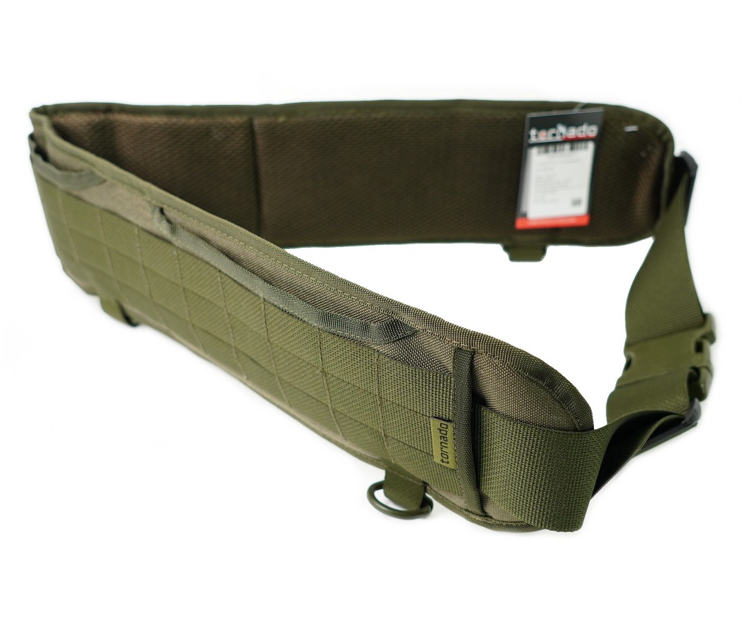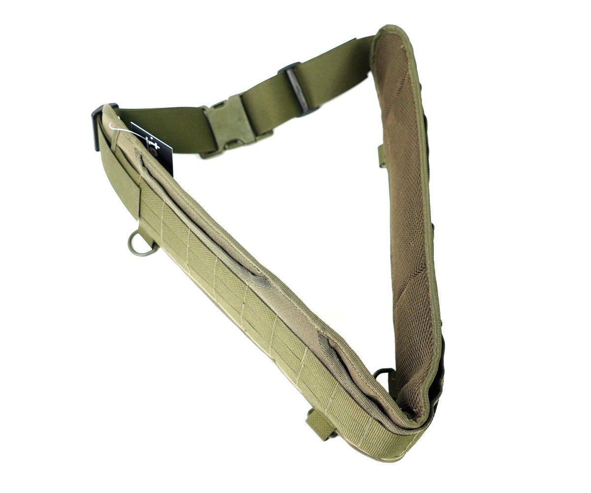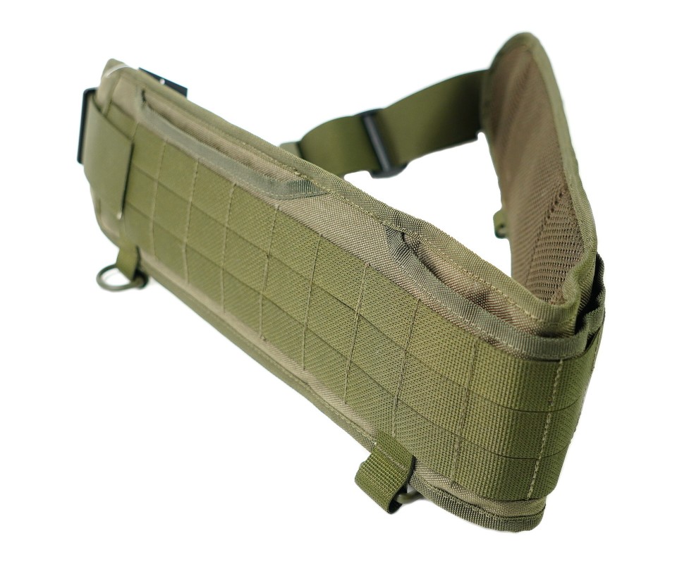 Боевой пояс является модульной разгрузочной системой, на передней панели нашиты стропы молле для крепления различных подсумков таких как магазинные, гранатные, подсумки под сброс пустых магазинов.