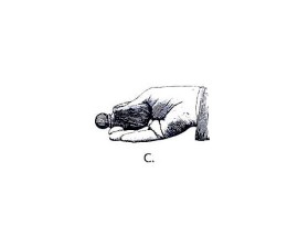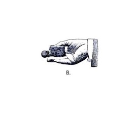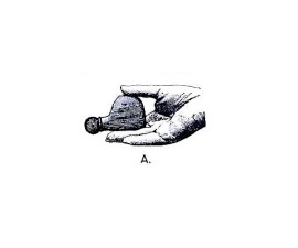 Для воспроизведения крика раненого животного необходимо большим пальцем равномерно, но несколько быстрее, чем в первом случае нажимать на грушу манка до положения изображенного на рисунке С. В этом случае струя воздуха будет подаваться на дополнительный пищик и манок будет имитировать крик раненого животного.