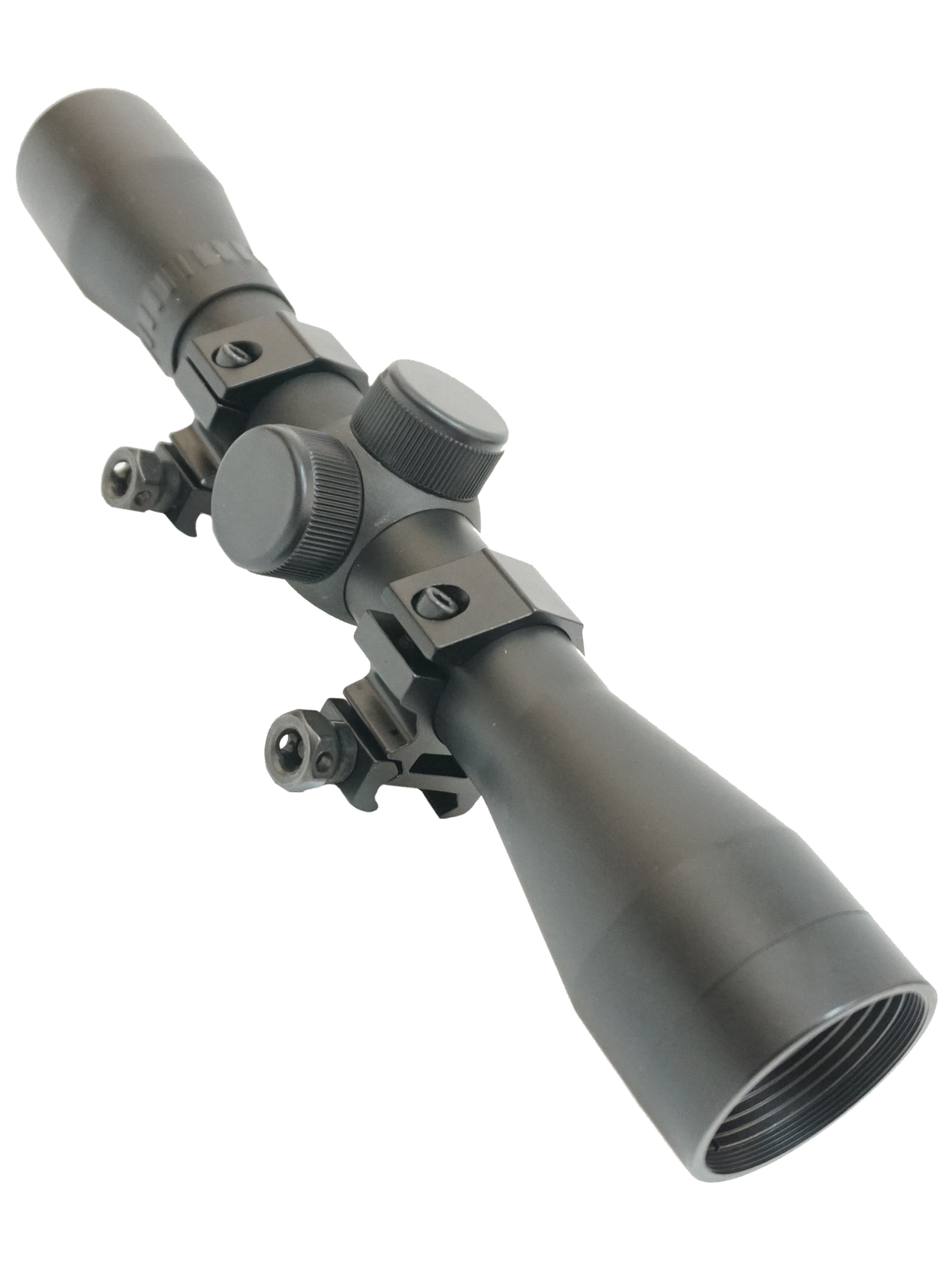 Прицел оптический, предназначенный для использования с арбалетами любых типов. Кратность 4х. Имеет специальную арбалетную шкалу. Кольца под планку Вивер.