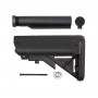 Специальный приклад телескопического вида для страйкбольных приводов M4/M16. Обладает шестью положениями длины. Основа такого изделия изготовлена из особого металла. Приклад сделан из очень надежного пластика. Внутри него есть специальные ячейки с целью размещения аккумулятора по типу CQB (или же коротких типа АК). В комплекте есть нужный крепеж.