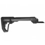 Приклад цельнофрезерованный из алюминиевого сплава. В передней части изделия на адаптере размещено гнездо QD антабки. В задней части - двухстороннее гнездо QD антабки и скоба защелки приклада. Не рекомендуется использовать скобу, как место крепления ремня. При желании скобу можно демонтировать.