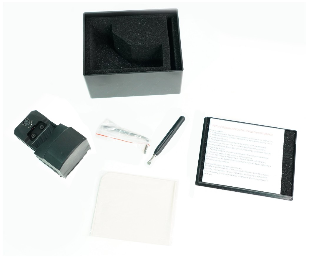Комплектация(?): | коллиматор, шестигранный ключ и отвёртка, винт, крышка, инструкция, коробка |
