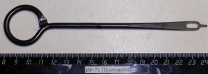 Шомпол для пистолета ПМ представляет собой тонкий металлический стержень, равный по длине стволовому каналу оснащаемого оружия. В задней части изделия, для удобства его эксплуатации, расположено кольцо, благодаря которому его можно надеть на палец для совершения всех необходимых манипуляций. В передней части протирки ПМ проделано небольшое отверстие, напоминающее игольное ушко. С его помощью к изделию можно прикреплять кусочки ткани или специальной бумаги, используемые для смазки стволового канала после предварительной чистки ершиком.