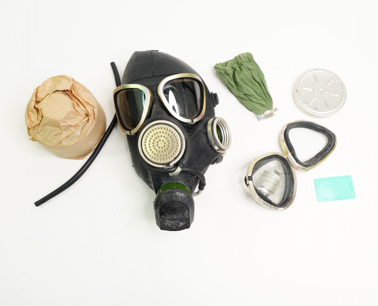 В комплект противогаза входят: лицевая часть, сумка из брезента, фильтрующая коробка, заглушка.
