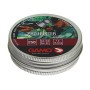 Количество пуль в банке - 250 штук средним весом 1 грамм. Отлично рассчитанный центр тяжести пули; головная часть имеет округлую поверхность, благодаря этому пули остаются в потоке воздуха и мало отклоняются от прямой траектории и набирают максимальную скорость.