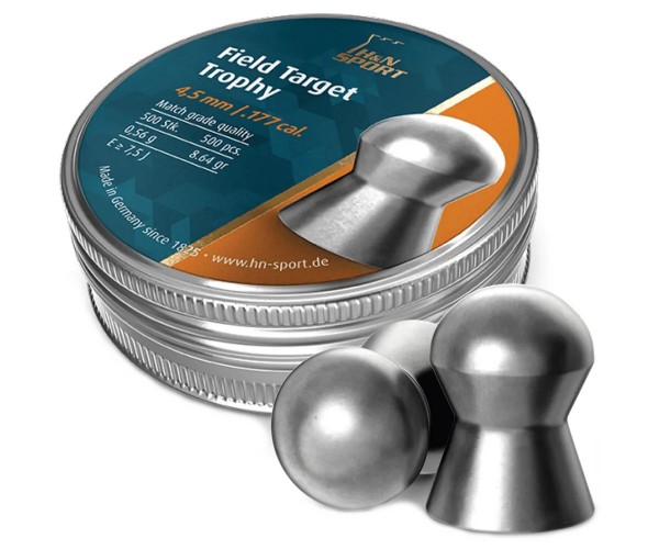 Пули H&N Field Target Trophy - средние по тяжести, высокоточные пули для соревнований с настильной траекторией полета для средних дистанций. Необычный аэродинамический дизайн для высокой проникающей способности и пробиваемости. Очень высокая кучность. Минимальное освинцовывание и равномерное распределение попаданий благодаря специальному сплаву и смазке. Поверхность гладкая. В упаковке 500 штук.