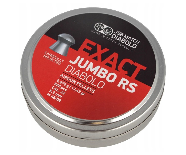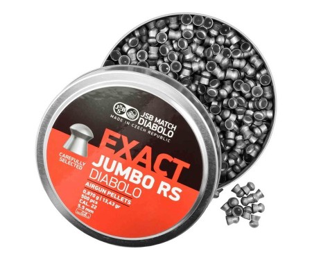 Пули JSB Exact Jumbo RS для пневматики калибра 5,5 мм — это высококачественные свинцовые пули с полусферической головной частью от чешского производителя JSB. Отлично подходят для спортивной стрельбы и охоты на средние дистанции. Пули в количестве 500 штук средним весом 0,87 грамм.