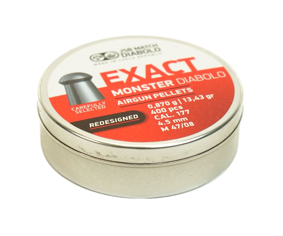 Пули Exact Monster Diabolo калибра 4,5 мм для пневматических винтовок и пистолетов. Утяжеленные, мягкие свинцовые пули высокого качества, средний вес 0,87 грамма. Диаметр головной части 4,52 мм. Лучший выбор для стрельбы из винтовок класса магнум. В банке 400 штук, подходят для охоты на мелкую дичь и для спортивной целевой стрельбы.