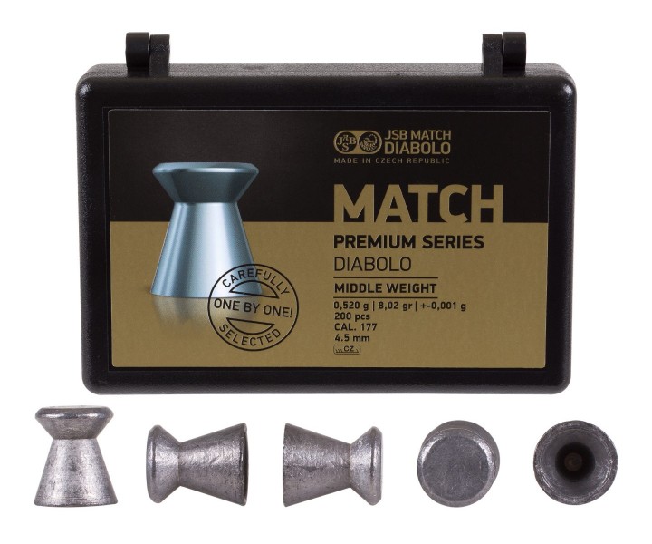 Пули JSB Match Premium Middle калибра 4,5 мм отличаются высоким качеством исполнения, средний вес 0,52 грамм. Плоская головная часть позволяет оставить ровные круглые отверстия в мишенях, чтобы было проще определять и сравнивать результаты. Отлично подходят для соревновательной стрельбы на дистанцию до 10 метров. В банке 200 штук. Минимальные допуски по массе и форме, дефектные образцы отбраковываются. Форма головной части плоская.