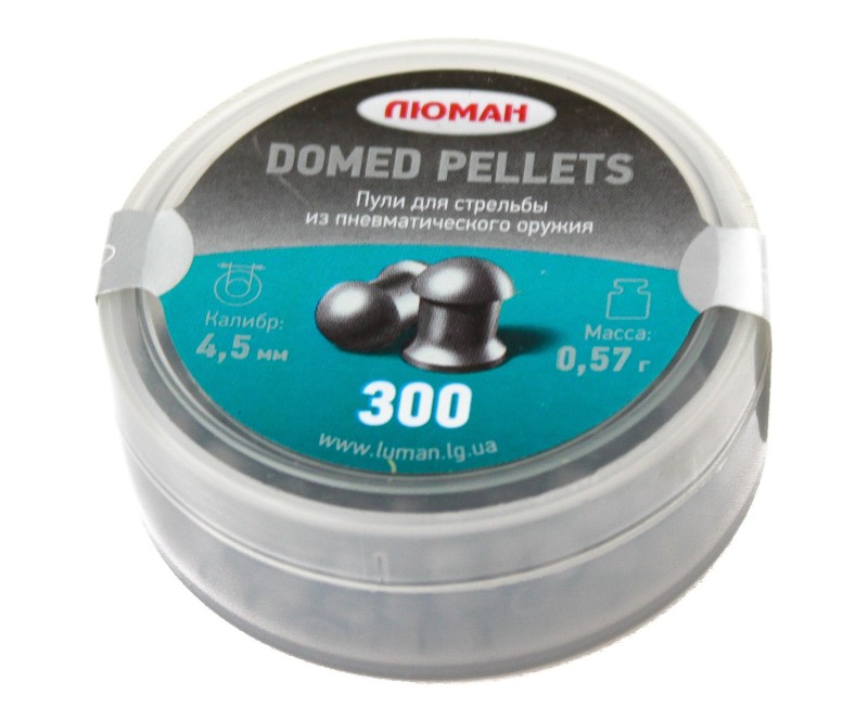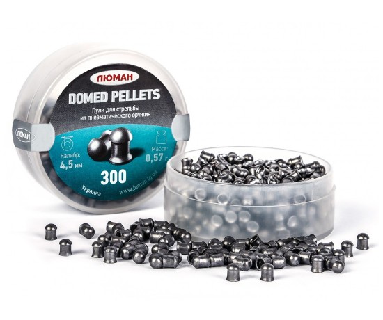 Пули Люман Domed Pellets 0,57 г - круглоголовые пневматические свинцовые пули с гладкой поверхностью. Штампованные свинцовые пули с высокой точностью и кучностью. Предназначены для развлекательной стрельбы на дистанциях до 25 метров. Калибр - 4,5 мм. Упаковка - пластиковая банка 300 шт.