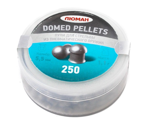 Пули Люман Domed Pellets 1,1 г - утяжеленные круглоголовые пневматические свинцовые пули. Штампованные, поверхность гладкая. Данные пули могут использоваться как в развлекательных, так и в спортивных целях. Рекомендуемая дальность стрельбы 25-50 метров. Калибр - 5,5 мм. Упаковка - пластиковая банка 250 шт.
