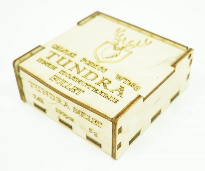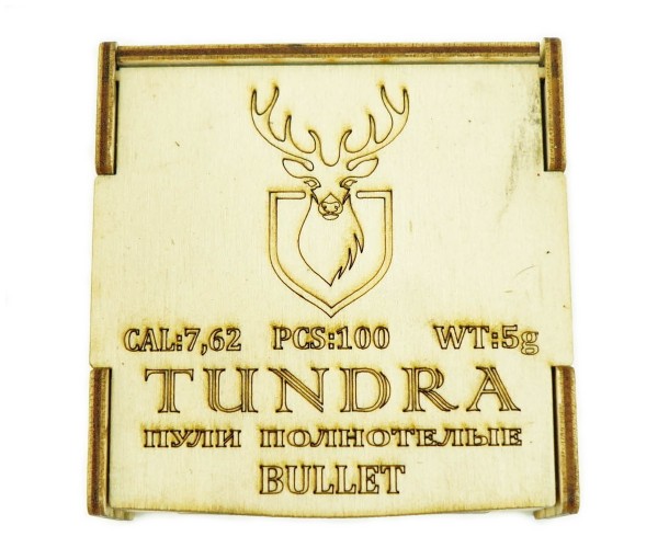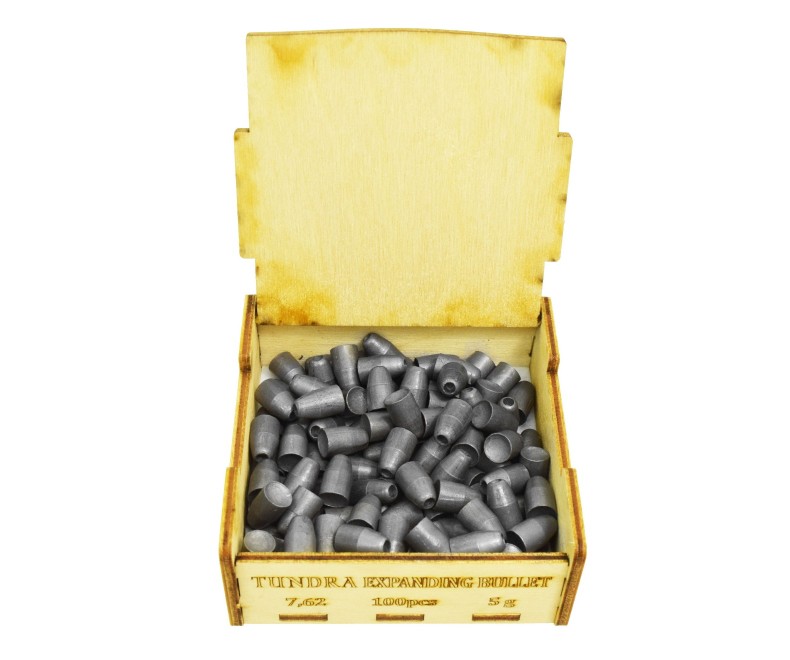 Пули полнотелые Tundra Bullet 5,0 г - тяжелые круглоголовые свинцовые пули калибра 7,62 мм. Данные пули рекомендуется использовать для охоты. Упаковка - деревянная коробочка, 100 шт.