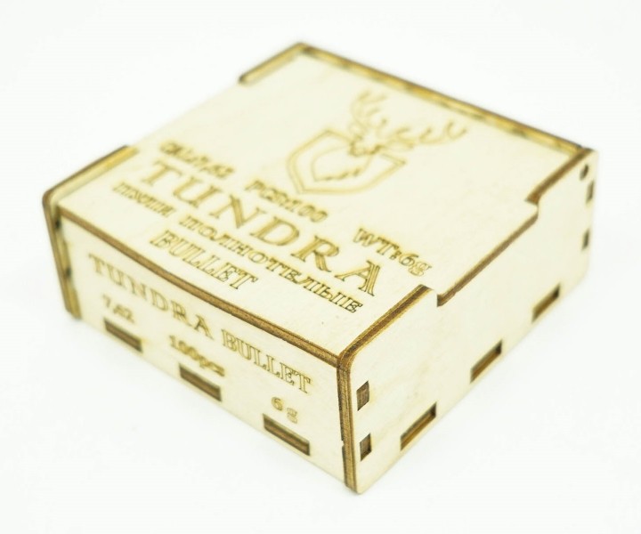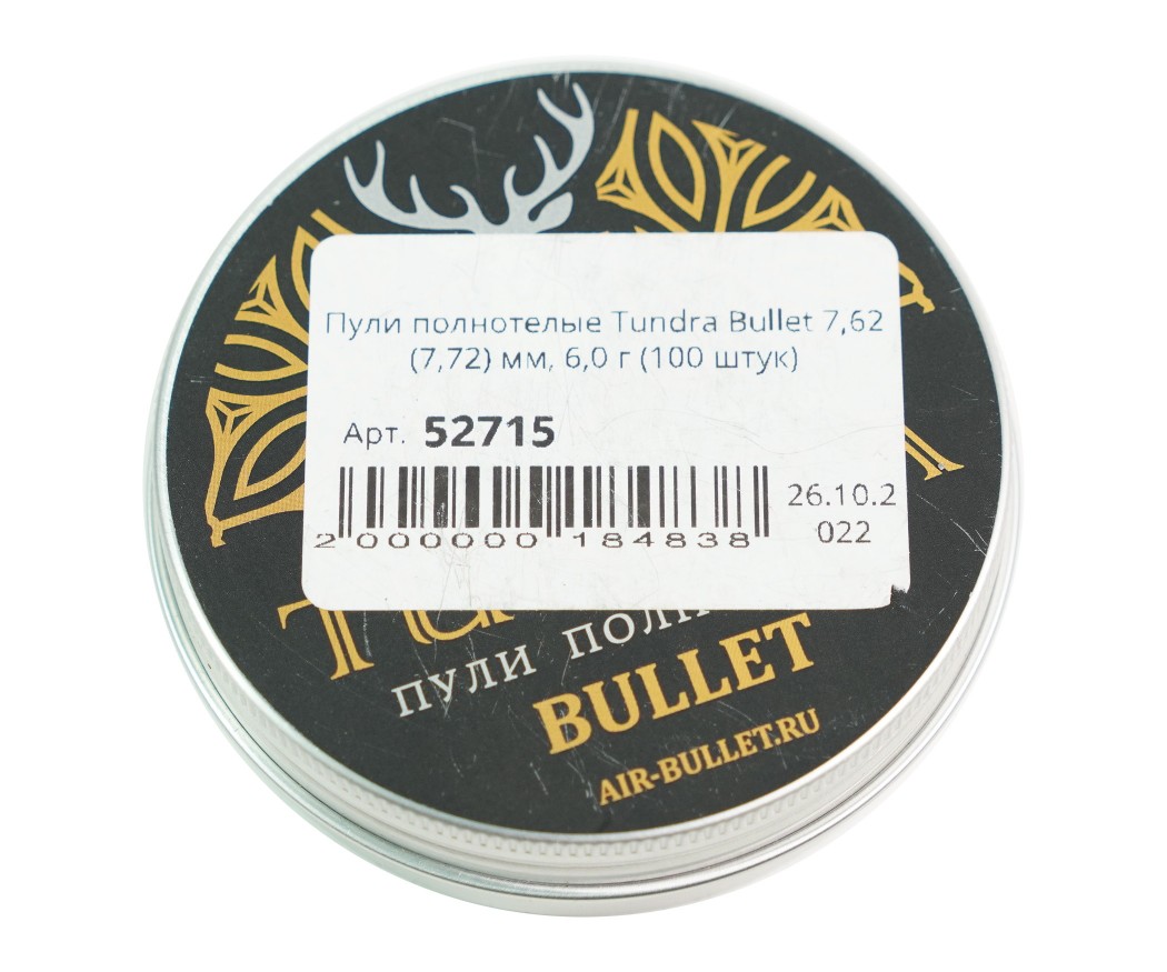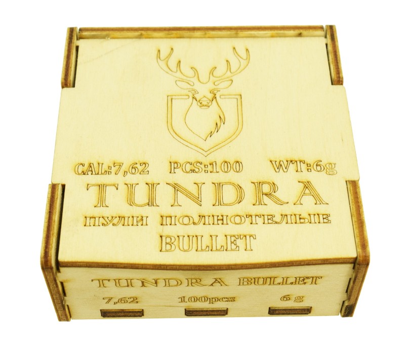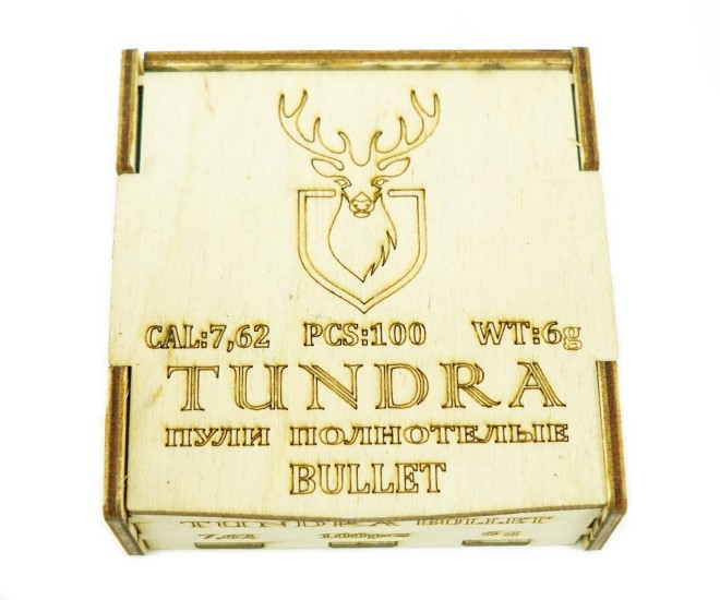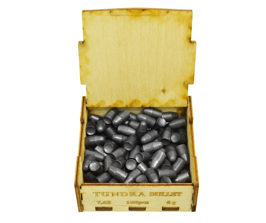 Пули полнотелые Tundra Bullet 6,0 г - тяжелые круглоголовые свинцовые пули калибра 7,62 мм. Данные пули рекомендуется использовать для охоты. Упаковка - деревянная коробочка, 100 шт.