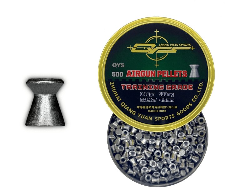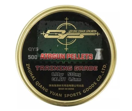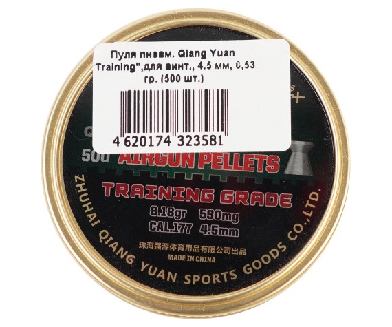 Пули Qiang Yuan Training - высокоточные пули с плоской головной частью калибра 4,5 мм для средних дистанций. В упаковке 500 штук средним весом 0,53 грамм.