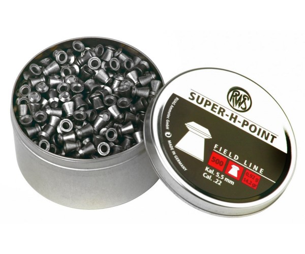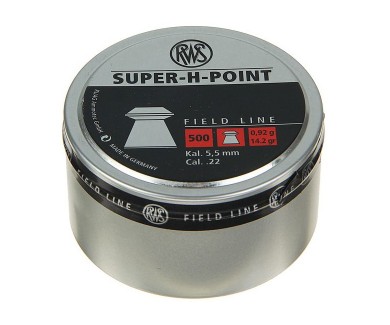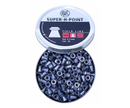 Пули RWS Super-H-Point для пневматики калибра 5,5 мм — качественные немецкие свинцовые пули, имеют гладкую поверхность и выемку в головной части. Отлично подходят для охоты на мелкую дичь и птиц. Обладает очень большой пробивной силой вследствие высокой степени деформации головной части при попадании в цель. При поражении дичи достигается максимальный эффект шока. Пули в количестве 500 штук средним весом 0,92 грамм.