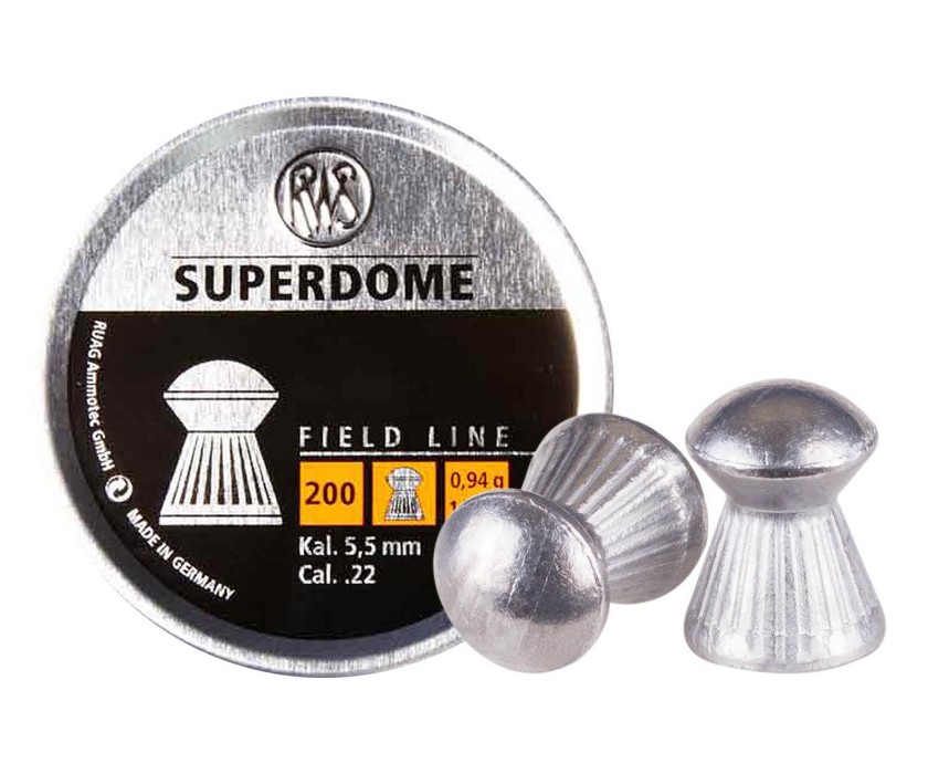 Пули RWS Superdome для пневматики калибра 5,5 мм — это свинцовые пули средней тяжести с закругленной головкой и рифленым корпусом. Конструктивные особенности обеспечивают высокую пробиваемость и проникающую способность. Пользуются популярностью при стрельбе на охоте из пневматических винтовок. Обладают высокой точностью поражения цели на больших расстояниях. Пули в количестве 500 штук средним весом 0,94 грамм.