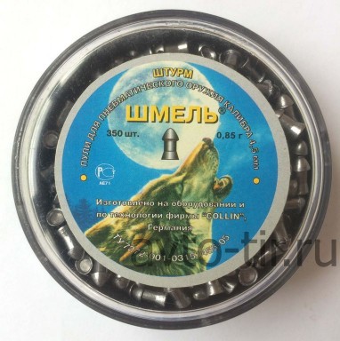 Пули Шмель «Штурм» калибра 4,5 мм — штампованные свинцовые пули с полусферической головной частью. Тяжелые свинцовые пули для охоты из мощной пневматики. Обладают отличными баллистическими характеристиками. В упаковке 350 штук, средний вес 0,85 грамм.