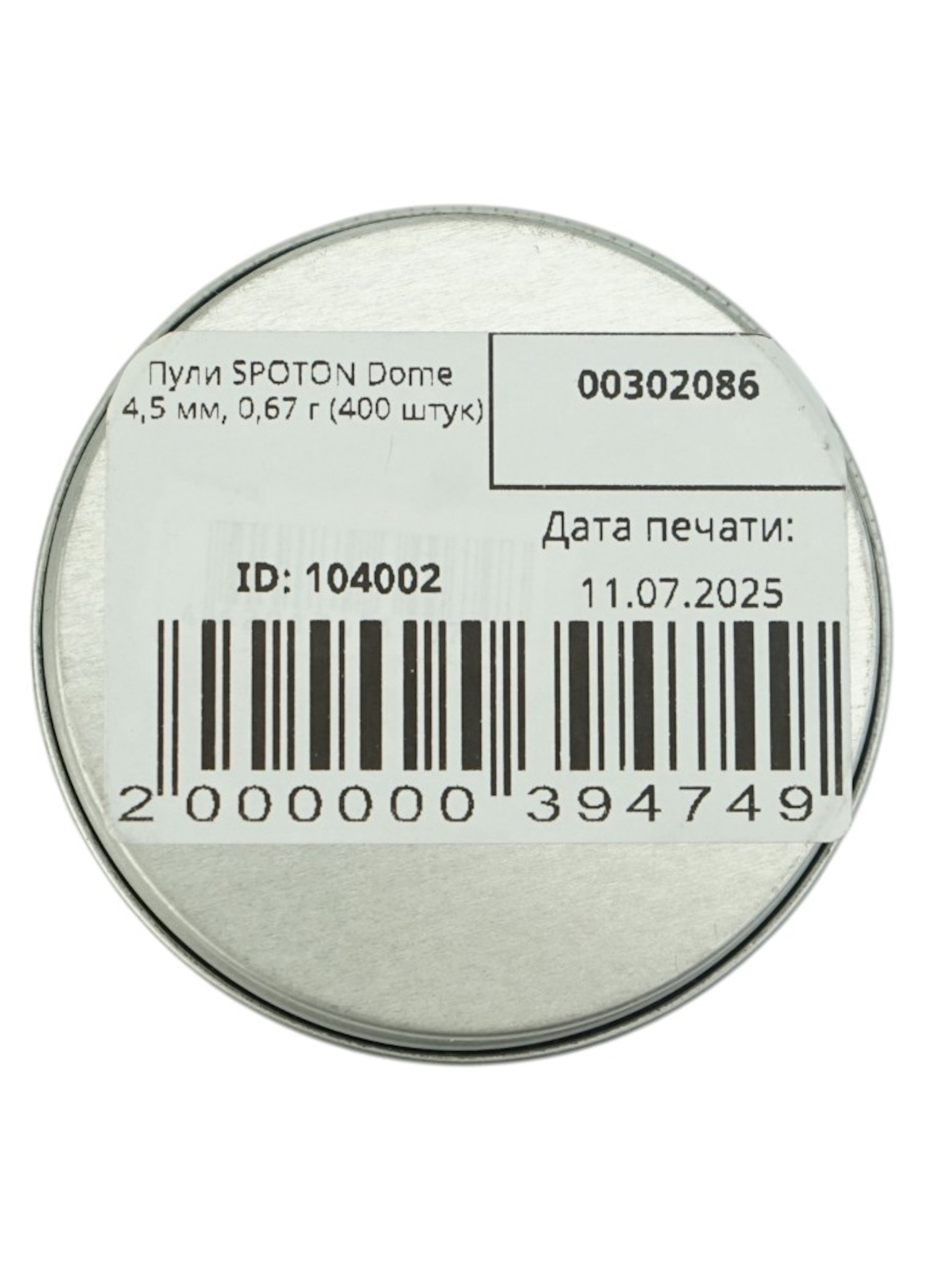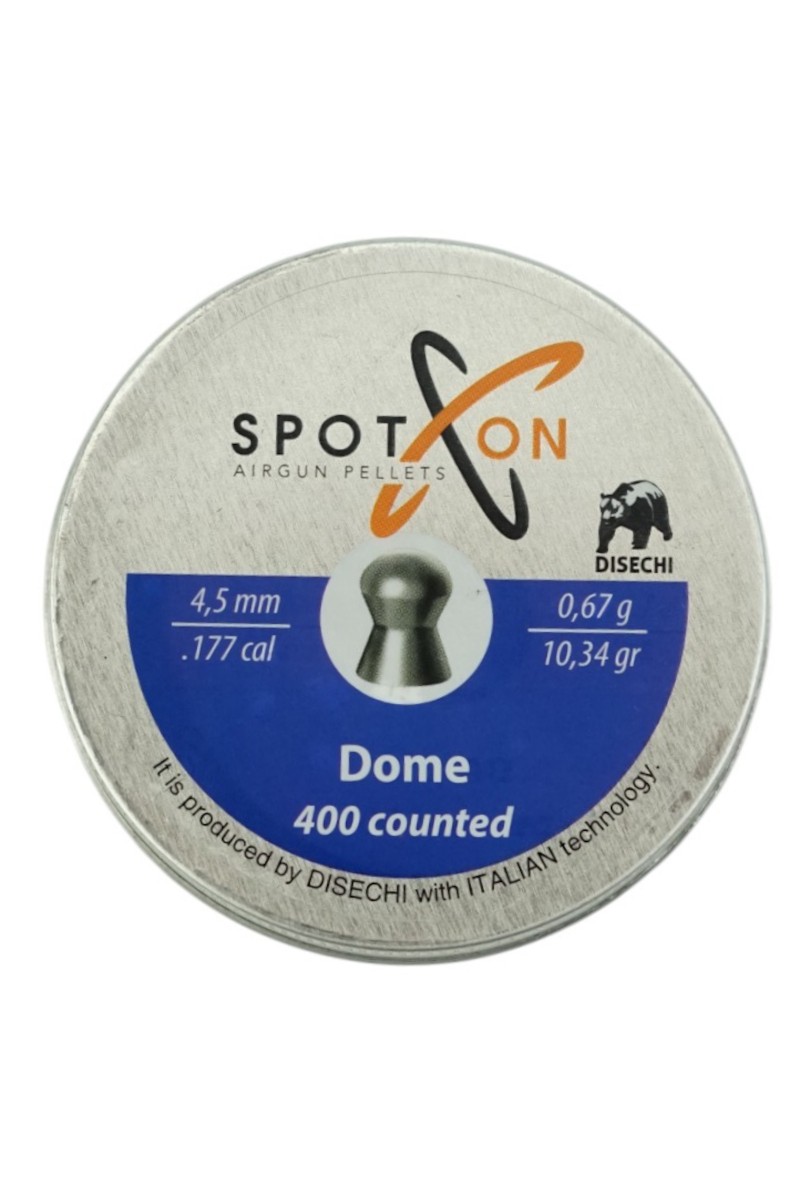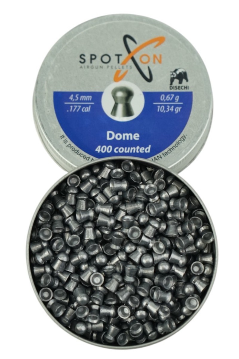 Пули SPOTON Dome - высокоточные утяжелённые пули с полусферической головной частью калибра 4,5 мм для средних дистанций. В упаковке 400 штук средним весом 0,67 грамм.