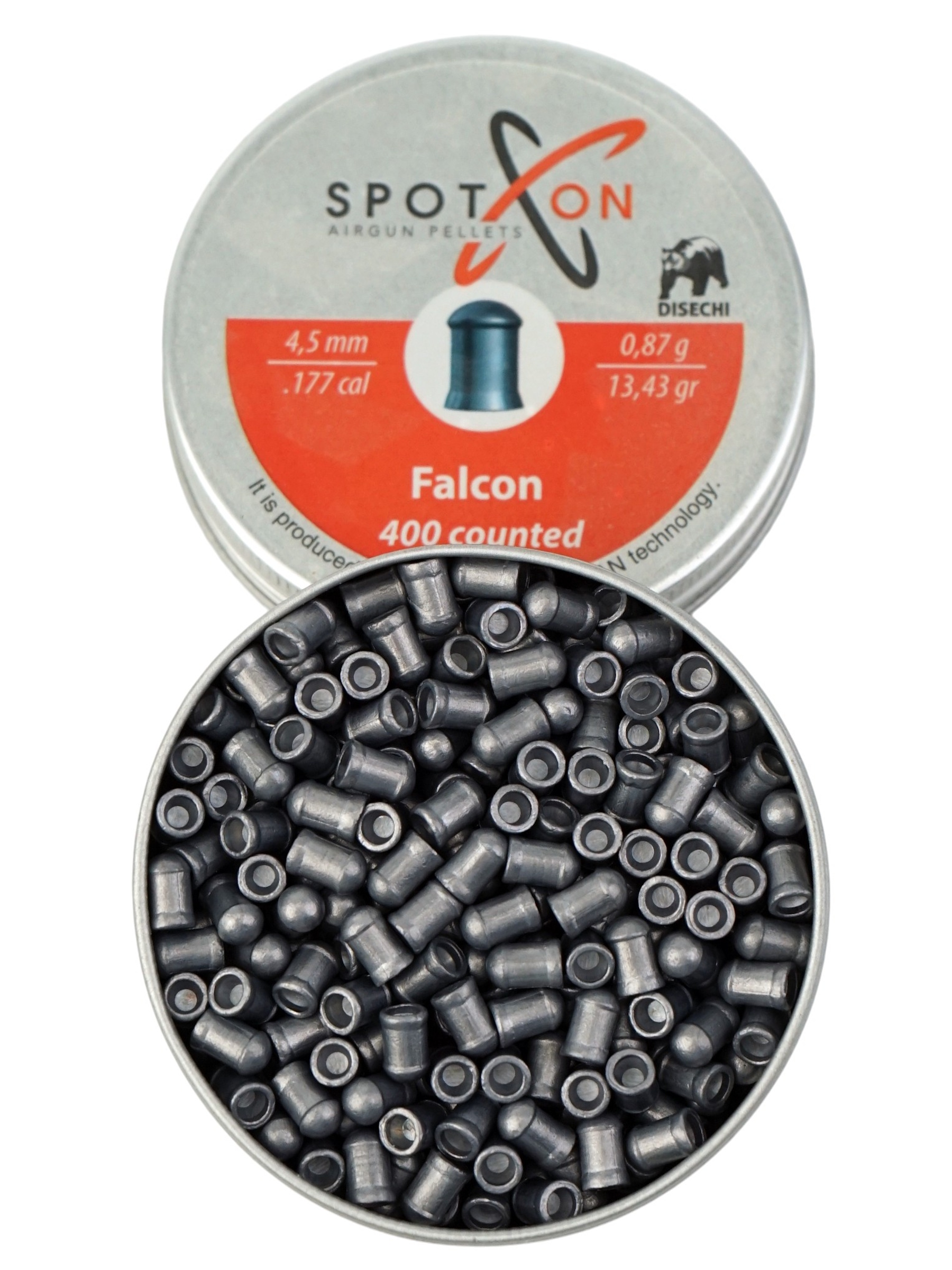 Пули SPOTON Falcon - высокоточные утяжелённые пули с полусферической головной частью калибра 4,5 мм для средних дистанций. В упаковке 400 штук средним весом 0,87 грамм.
