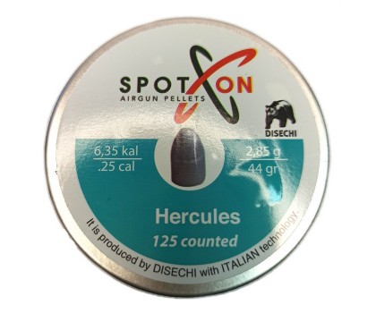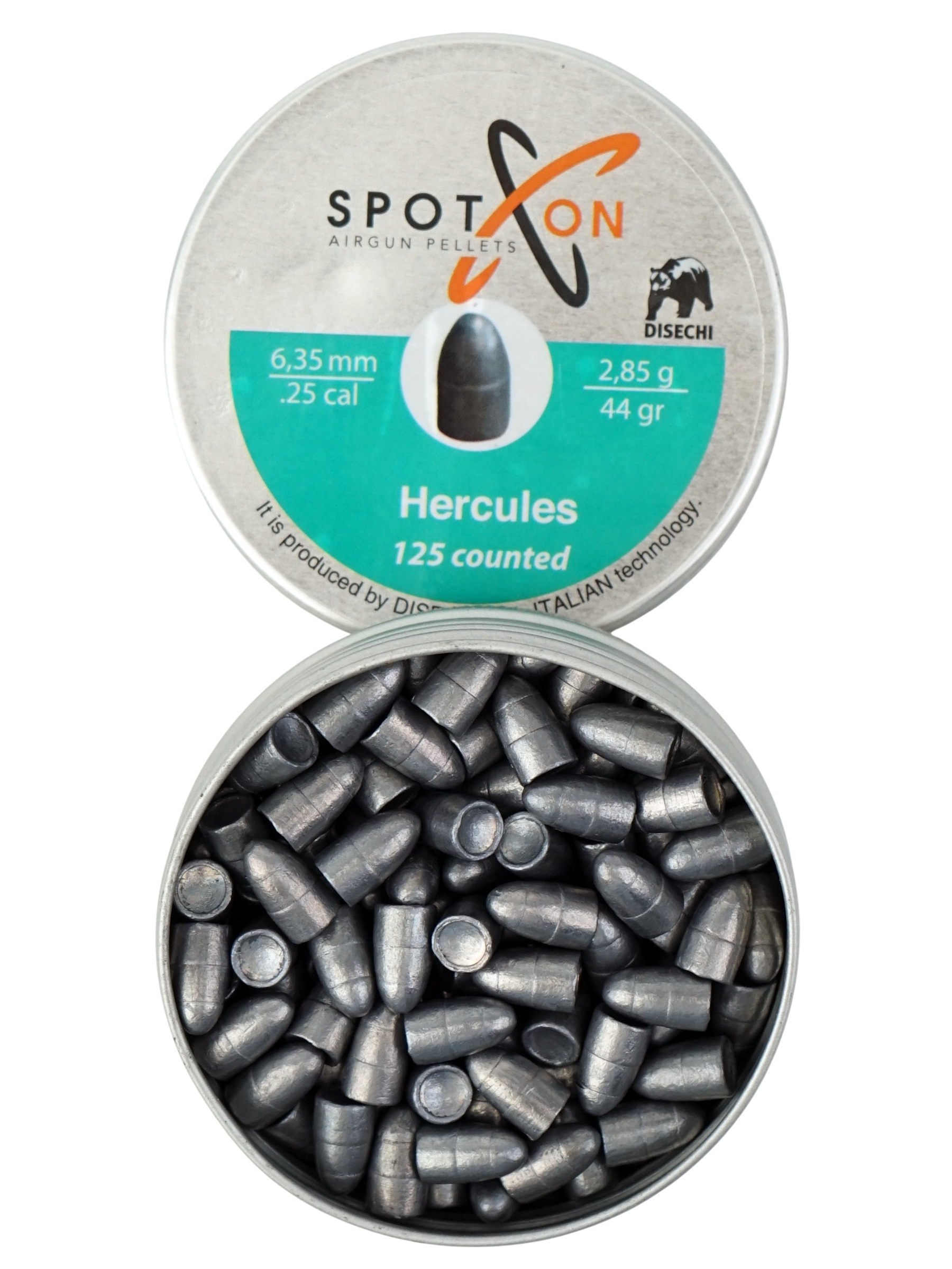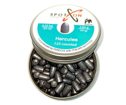 Пули SPOTON Hercules - высокоточные утяжелённые пули с полусферической головной частью калибра 6,35 мм для больших дистанций. В упаковке 125 штук средним весом 2,85 грамм.