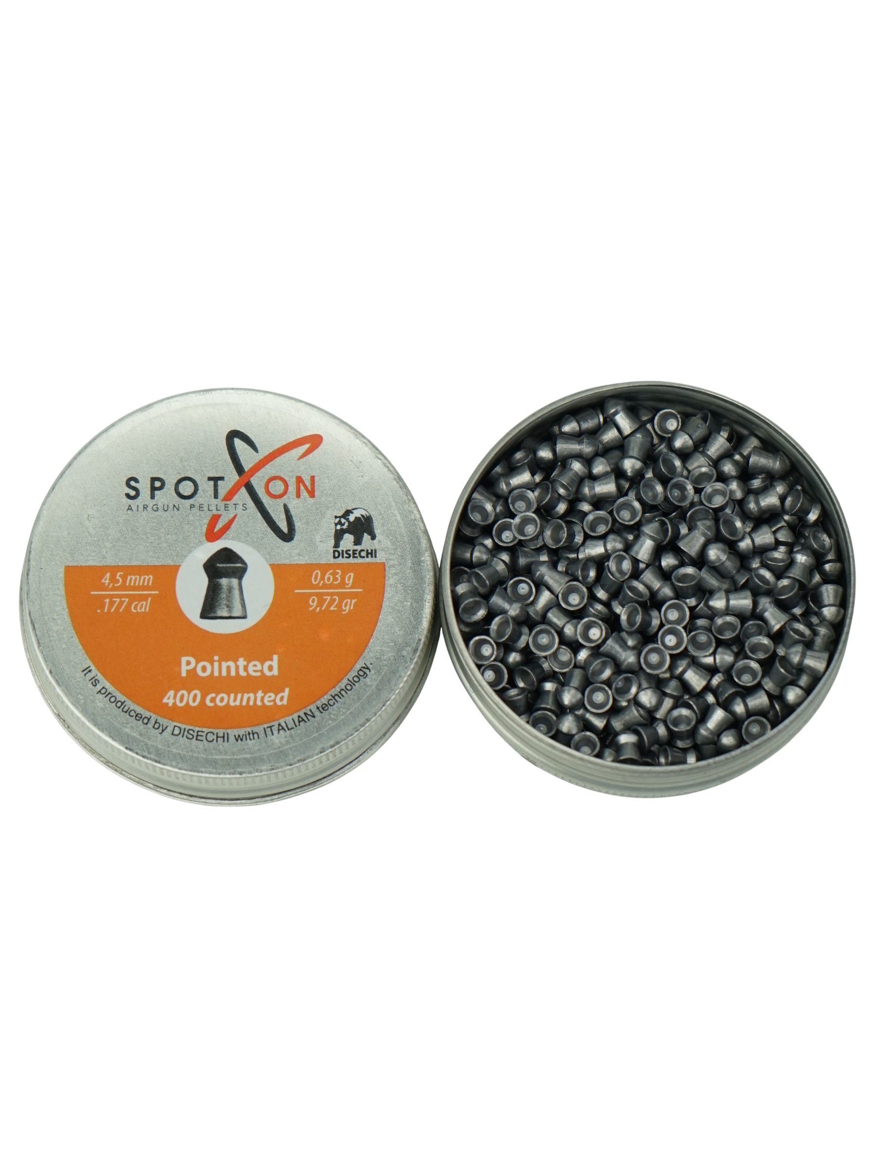 Пули SPOTON Pointed - высокоточные утяжелённые пули с конической головной частью калибра 4,5 мм для средних дистанций. В упаковке 400 штук средним весом 0,63 грамм.