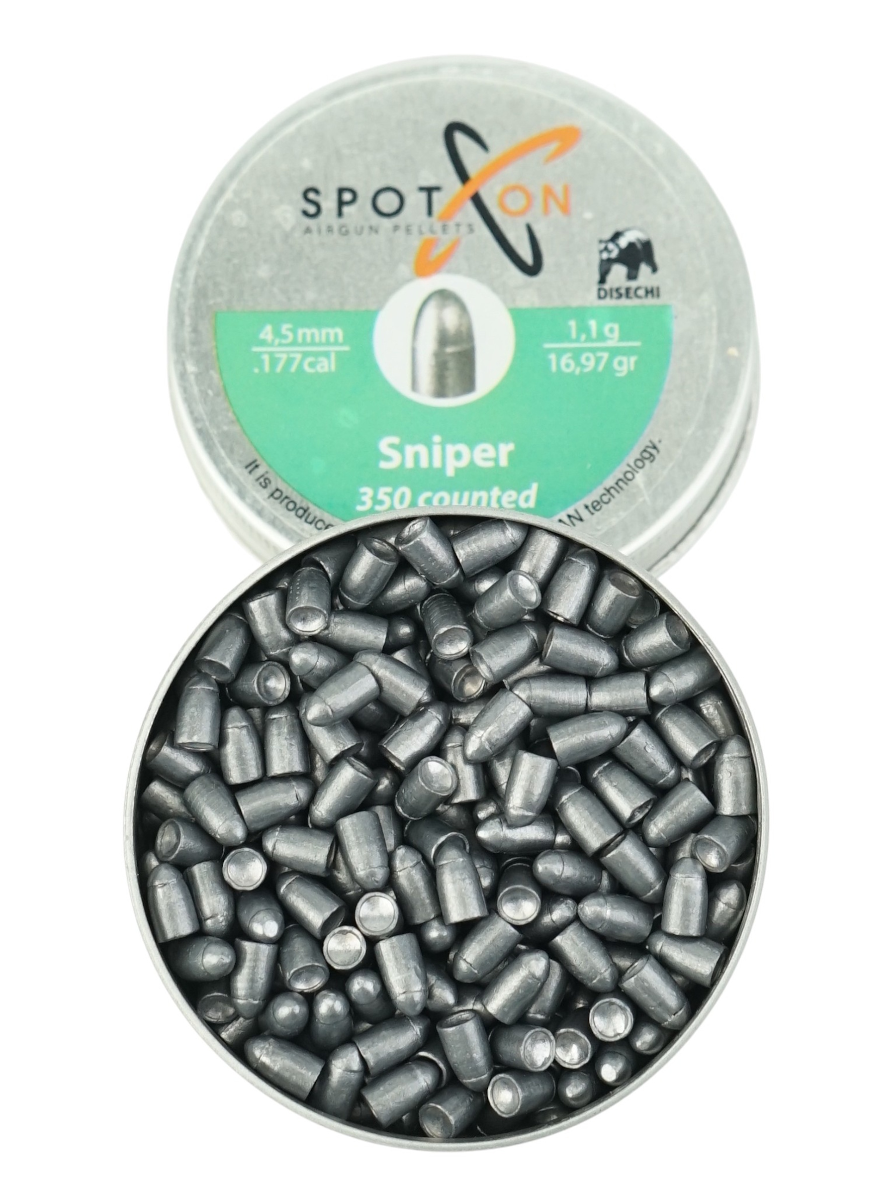 Пули SPOTON Sniper - высокоточные утяжелённые пули с полусферической головной частью калибра 4,5 мм для дальних дистанций. В упаковке 350 штук средним весом 1,1 грамм.