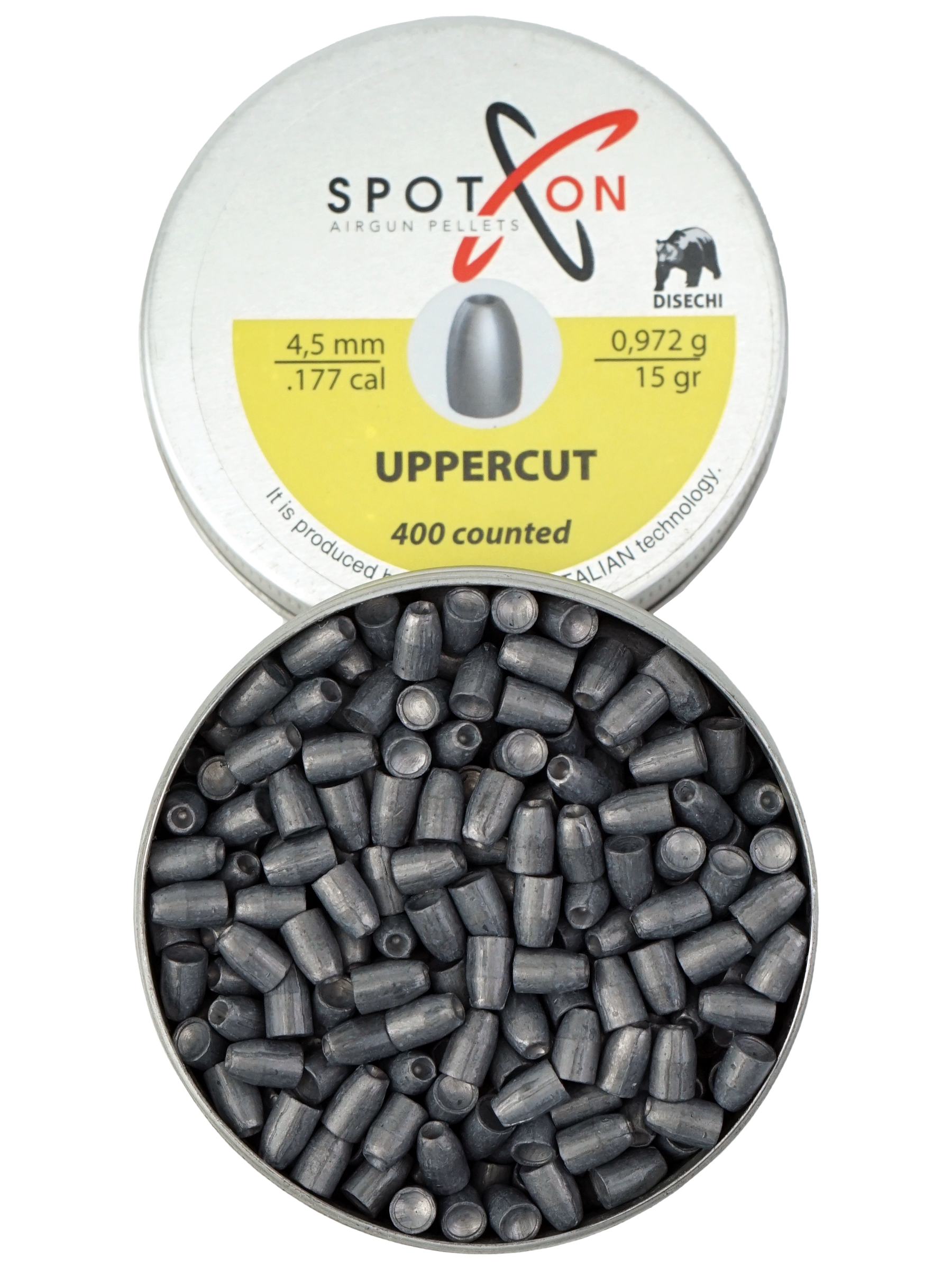 Пули SPOTON Uppercut - высокоточные утяжелённые пули с выемкой калибра 4,5 мм для дальних дистанций. В упаковке 400 штук средним весом 0,97 грамм.