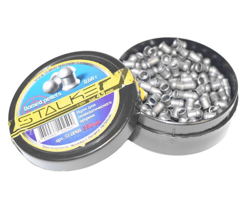 Пули Stalker Domed pellets 0,68 г – утяжеленные свинцовые пули калибра 4,5 мм с полусферической головкой и гладкой поверхностью. Штампованные пули с высокой точностью и кучностью. Универсальные пули, высокие аэродинамические характеристики, хорошая проникающая способность. В упаковке 250 штук.