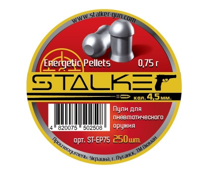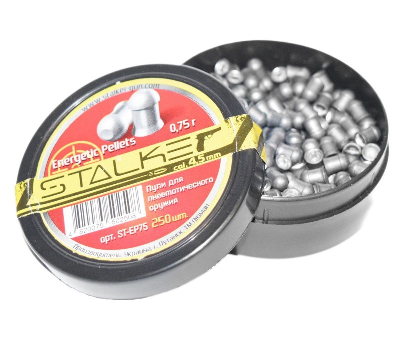 Пули Stalker Energetic pellets 0,75 г – утяжеленные свинцовые пули калибра 4,5 мм с усеченной сферической головкой и гладкой поверхностью. Штампованные пули с высокой точностью и кучностью. Экспансивные пули, повышенное останавливающее действие. В упаковке 250 штук.