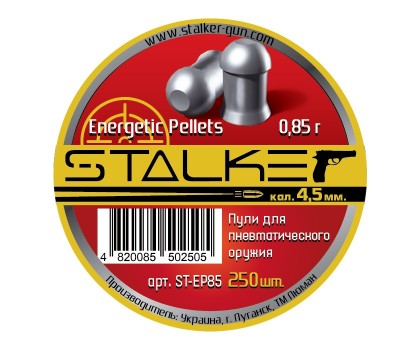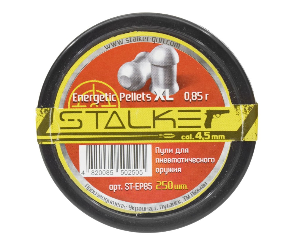 Пули Stalker Energetic pellets 0,85 г – утяжеленные свинцовые пули калибра 4,5 мм с усеченной сферической головкой и гладкой поверхностью. Штампованные пули с высокой точностью и кучностью. Экспансивные пули, повышенное останавливающее действие. В упаковке 250 штук.