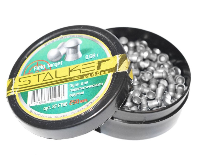 Пули Stalker Field Target 0,68 г – утяжеленные свинцовые пули калибра 4,5 мм со сферической головкой и гладкой поверхностью. Штампованные пули с высокой точностью и кучностью. Пули повышенной точности, высочайшие аэродинамические характеристики, максимальная кучность. В упаковке 250 штук.