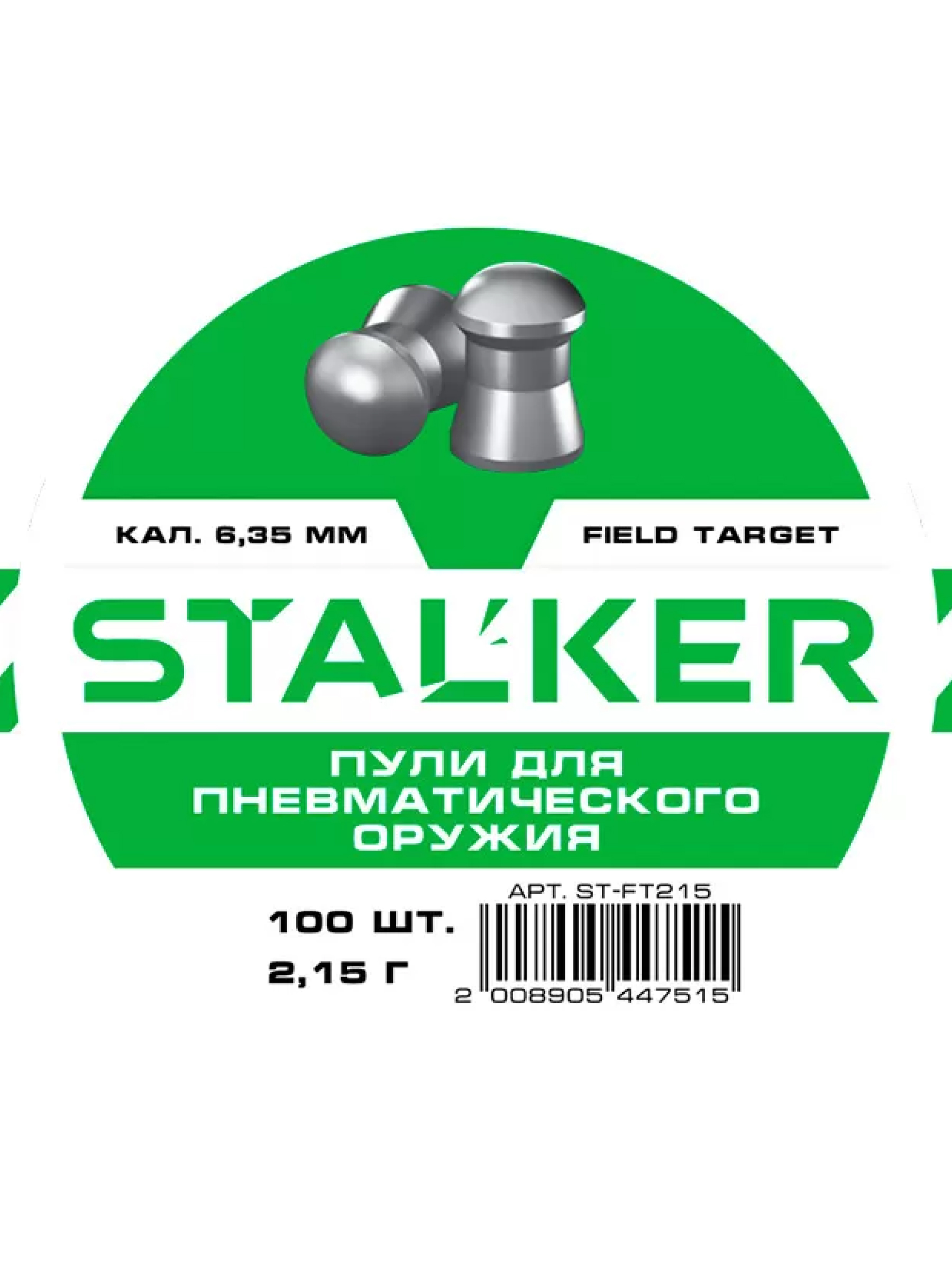 Пули Stalker Field Target 2,15 г – утяжелённые свинцовые пули калибра 6,35 мм с гладкой поверхностью. Штампованные пули с высокой точностью и кучностью. Универсальные пули, высокие аэродинамические характеристики, хорошая проникающая способность. В упаковке 100 штук.