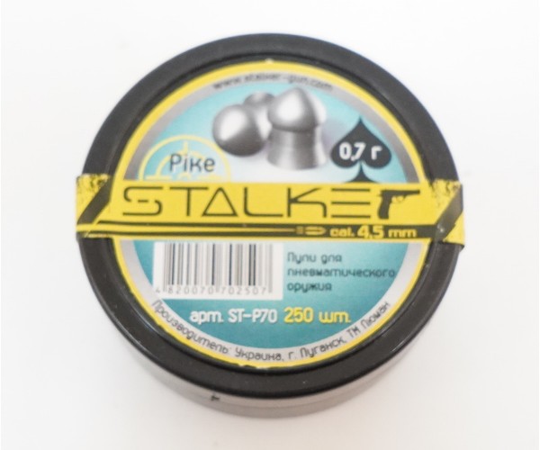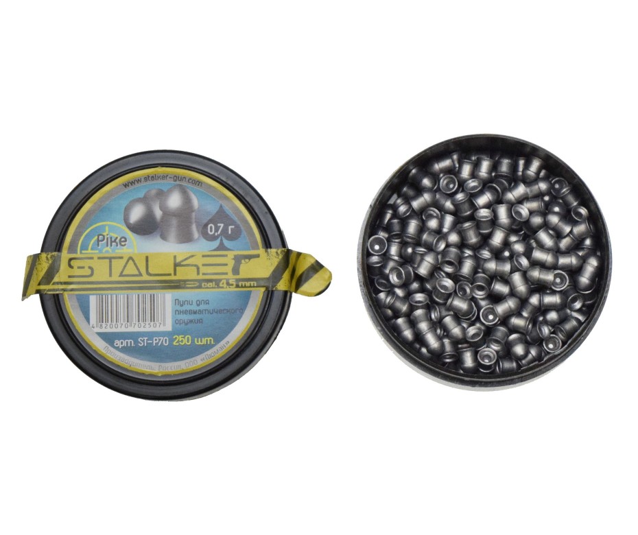Пули Stalker Pike 0,7 г – утяжеленные свинцовые пули повышенной точности калибра 4,5 мм с оживальной головкой. Высочайшие аэродинамические характеристики, максимальная кучность. В упаковке 250 штук.