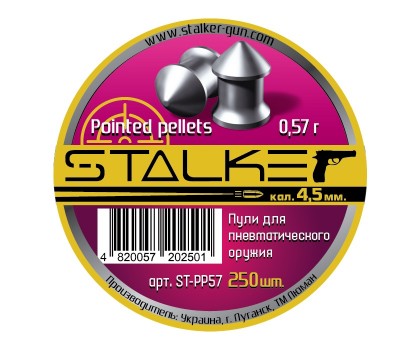 Пули Stalker Pointed pellets 0,57 г – пневматические свинцовые пули калибра 4,5 мм с конической головкой и гладкой поверхностью. Штампованные пули с высокой точностью и кучностью. Максимальная проникающая способность, не самые высокие аэродинамические характеристики, слабое останавливающее действие. В упаковке 250 штук.