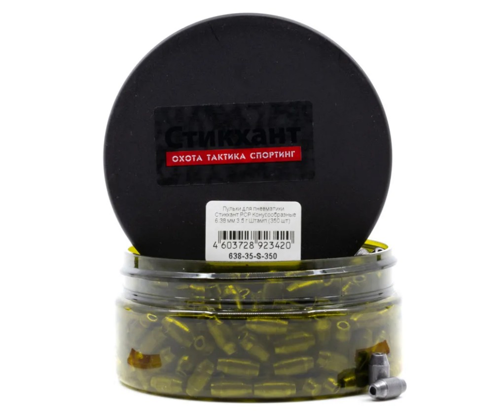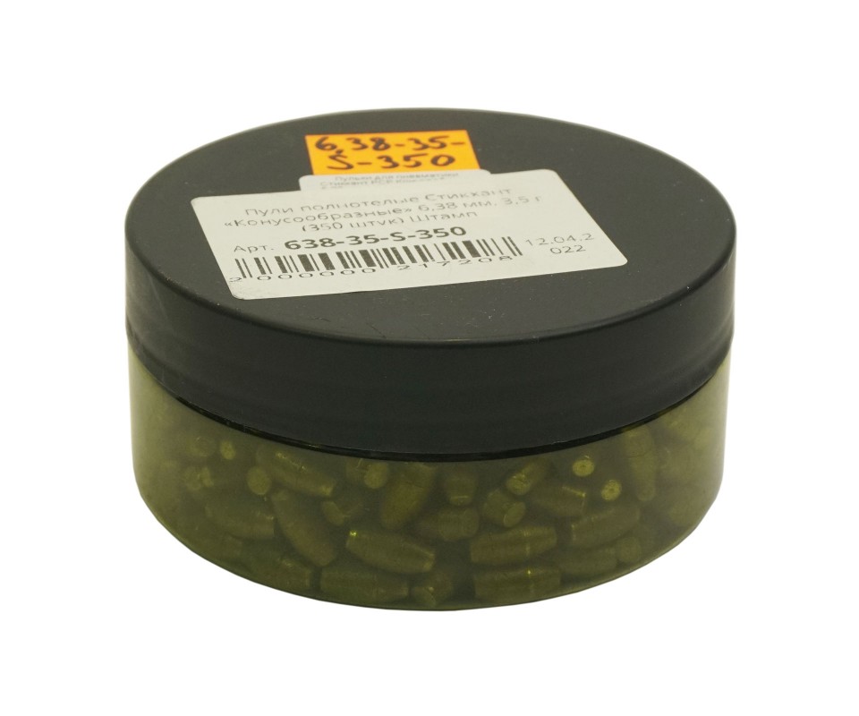 Пули Стикхант «Конусообразные» весом 3,5 грамм - тяжелые свинцовые пули калибра 6,35 мм с полукруглой головной частью. Данные пули рекомендуется использовать для охоты. Количество в упаковке - 350 штук.