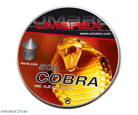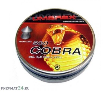 Пули Umarex Cobra - остроконечные пули с вертикальными насечками, для прицельной и развлекательной стрельбы по банкам. В упаковке 500 штук, средний вес 0,56 грамм. Обладают высокой проникающей способностью. Отлично подходят для стандартных пневматических винтовок всех типов.