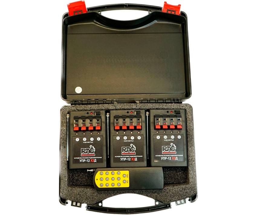 RAG УПР-12Х3Д применяется для удалённого запуска учебно-имитационных пиротехнических гранат посредством передачи радиосигнала на принимающую базу, которая в свою очередь принимая сигнал подаёт на нужный канал электрический импульс для воспламенения.