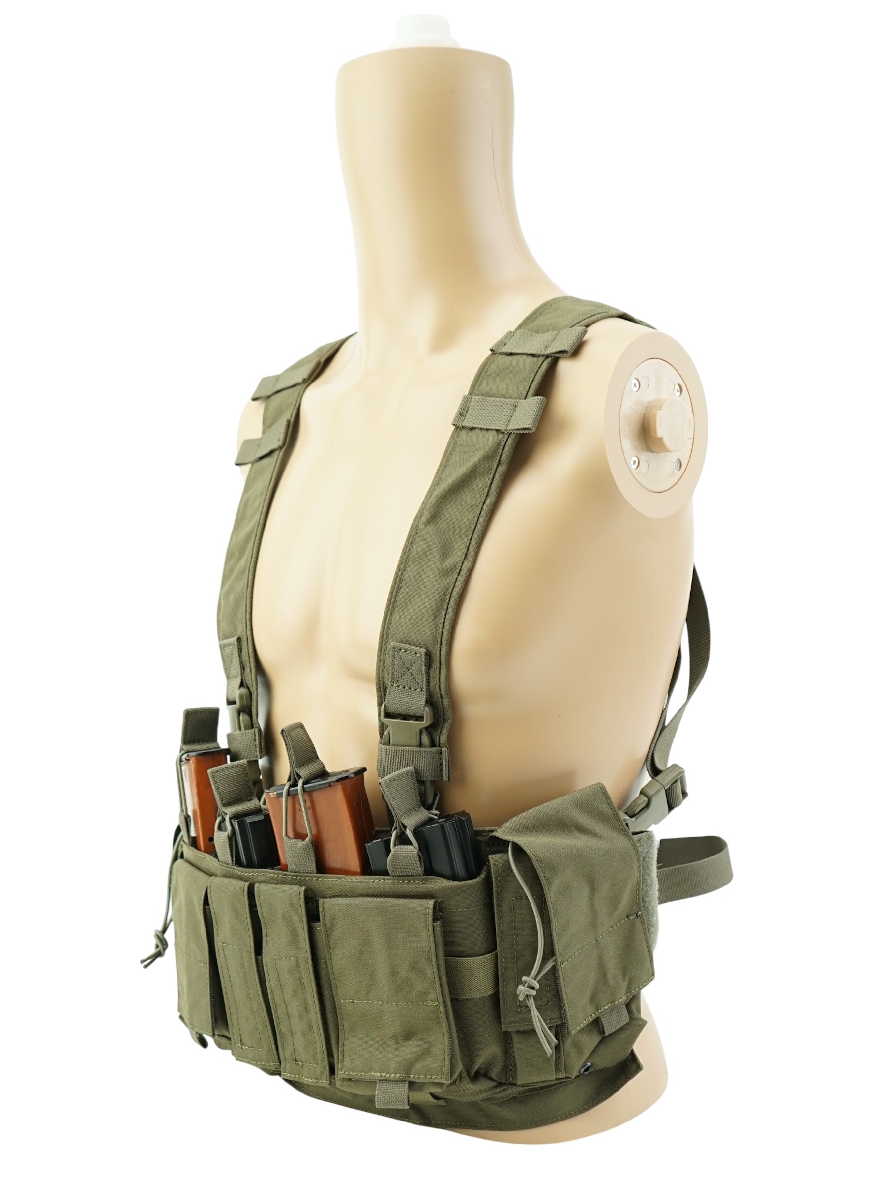Может вместить 6 магазинов 5,56/5.45 и до 4 штук пистолетных магазинов. Клапаны боковых подсумков могут быть убраны для удобства, при этом основные подсумки снабжены утягивающими резинками, которые позволяют быстро и бесшумно извлекать магазины.