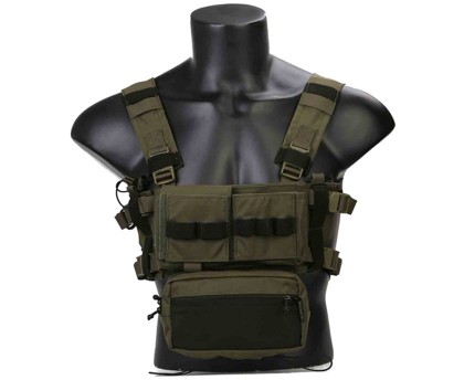 Высококачественная модель разгрузочной системы Micro Fight Chissis MK3 Chest Rig от Emerson, в расцветке Ranger Green. Самый легкий нагрудник с 2018 года по сей день.