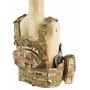 Состоит из трёх частей – передней панели и задней панелей, соединяющихся поясом-камербандом. По всей площади жилета нашиты стропы «молле» для крепления подсумков. 1 утилитарный подсумок, подсумок под 3 магазина и 1 подсумок под радиостанцию.