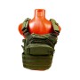 Состоит из трёх частей – передней панели и задней панелей, соединяющихся поясом-камербандом. По всей площади жилета нашиты стропы «молле» для крепления подсумков. 1 утилитарный подсумок, подсумок под 3 магазина и 1 подсумок под радиостанцию.