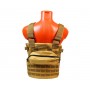 Состоит из трёх частей – передней панели и задней панелей, соединяющихся поясом-камербандом. По всей площади жилета нашиты стропы «молле» для крепления подсумков. 1 утилитарный подсумок, подсумок под 3 магазина и 1 подсумок под радиостанцию.