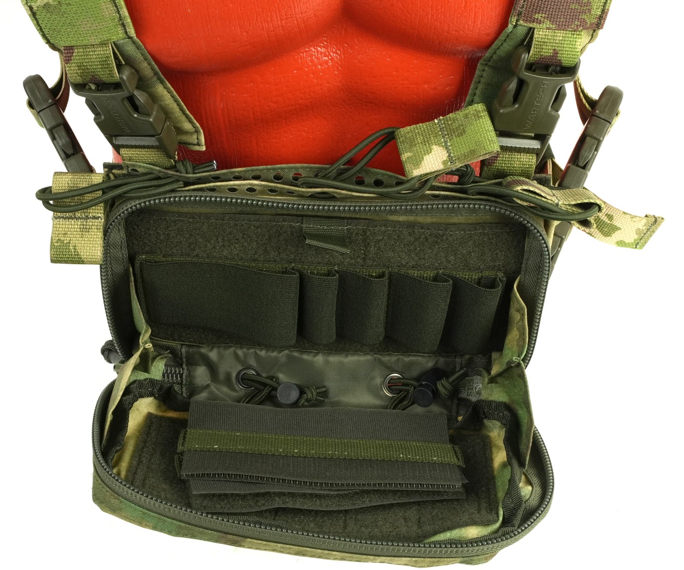 Предназначен для использования как с бронежилетом, так и в качестве самостоятельного элемента снаряжения. Изделие выполнено в виде основного переднего отделения с отстёгивающимися плечевыми лямками, поясной стропы и боковых съёмных панелей.